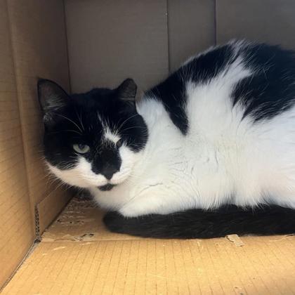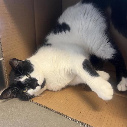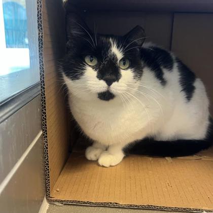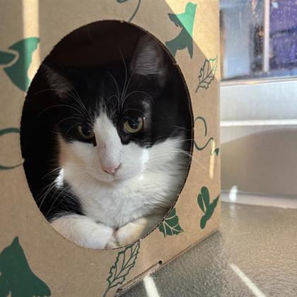 I'm a sweet tuxedo girl with a soft heart and an even softer purr. I may look classy in my black-and-white coat, but I'm really just a gentle soul who wants someone to love and trust. I enjoy the quiet things in life-cozy naps, warm laps, and sitting nearby while you do your own thing. I'd do best in a calm home where I can settle in, feel secure, and blossom at my own pace. When I do, you'll have a loyal companion who stays close and fills your home with comfort.Come meet me from 12 PM to 6 PM, open every day.No application or appointment required - walk-ins welcome.SPCA of Texas, 2400 Lone Star Drive, Dallas, TX 75212