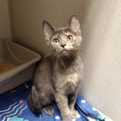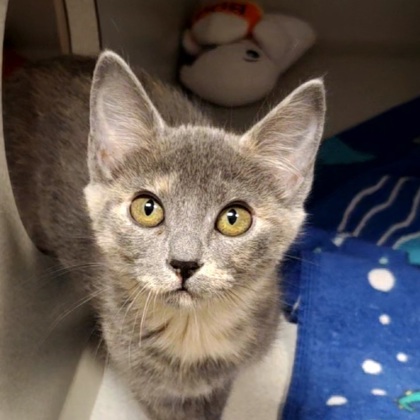 Hello, I'm Spirit and my name is fitting. I am a cute alert, 2-1/2 month old Blue and Cream, Female Domestic Short Hair Tortoiseshell. I love snuggling, pouncing on my toys and chasing them. Santa told me he would find me my purrrrrfect human!I will be at the City Place PetSmart beginning Thursday 12/18/25.* Appointment is Needed *