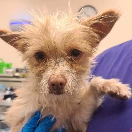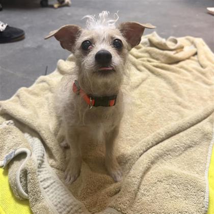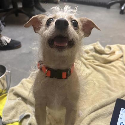 My name is London, and I'm a scruffy little mixed-breed girl with a tender heart and a big hope for a forever home. I had a shy start to life, the kind where even simple things felt a little scary at first. But kind humans taught me how to walk on a leash, how to relax, and how to trust. I'm getting better every single day.I'm the sort of dog who quietly comes closer, then stays near because it feels safe and warm beside you. I don't need much-just gentle hands, patience, and someone who understands a sweet soul like me. If you give me time, I'll give you all the love I've been saving up.I am currently in a foster home, so please email foster@spca.org to meet me!