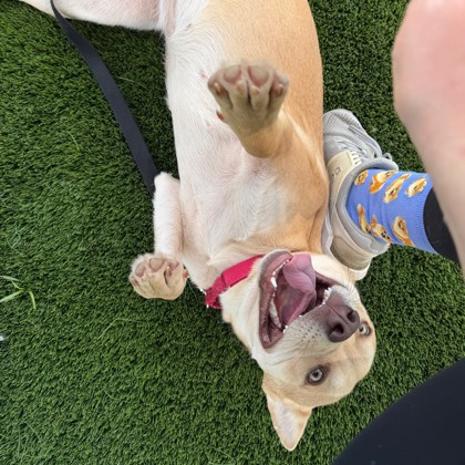 Looking for a loyal companion who will shower you with love and affection? Meet Lucy, the ultimate cuddle queen! This sweet girl's favorite pastime is being by your side, rolling onto her back with all four paws in the air-just waiting for those irresistible belly rubs.Lucy has been thriving in her foster home, making great strides with crate training and potty training. She loves long walks, playtime in the yard, and, most of all, simply being close to her people. Whether you're curled up on the couch or out for an adventure, Lucy just wants to be part of it all.If you're looking for a gentle, affectionate pup to fill your home with joy, Lucy is ready to be your new best friend. She's got the eyes, the heart, and the snuggles-all she needs now is you.APPOINTMENT TYPE: I am in a foster home, so please fill out and application to meet me!