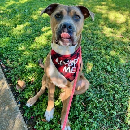 Hi, I'm Tank! I'm the kind of dog who can go for a hike, romp around the yard like a goofball, and win every time at tug-of-war. Playtime? I'm always down. Squeaky toys? Yes, please. But after the fun, I'm just as happy to plop down next to you (or on you!) I could rest my head on your lap and nap the afternoon away. I'm still learning about this crazy world, but I promise I listen well and learn fast, especially when treats are involved!If you're looking for a dog who's part playful pup, part cuddle monster, and 100% love, then I think we might be a perfect match.BORROW-A-BUDDY REPORT:"Highlight of our day was going to PETSMART and letting him pick his own toy. He's a great dog!"Tank was very excited to get a pup cup on our day out! honestly the highlight though was getting to walk around arbor hills and meet a bunch of new people and other animals!Come meet me from 12 PM to 6 PM, open every day.No application or appointment required - walk-ins welcome.SPCA of Texas, 2400 Lone Star Drive, Dallas, TX 75212