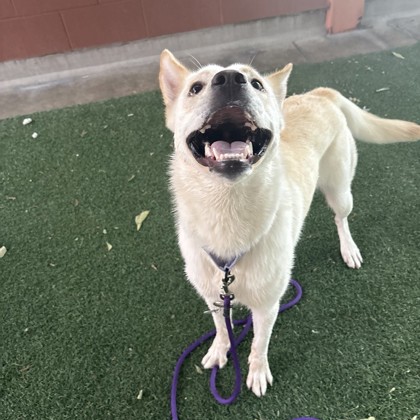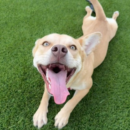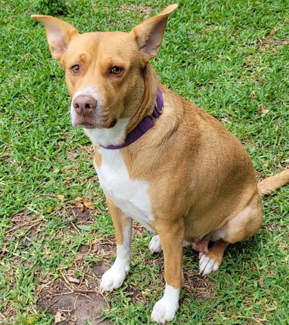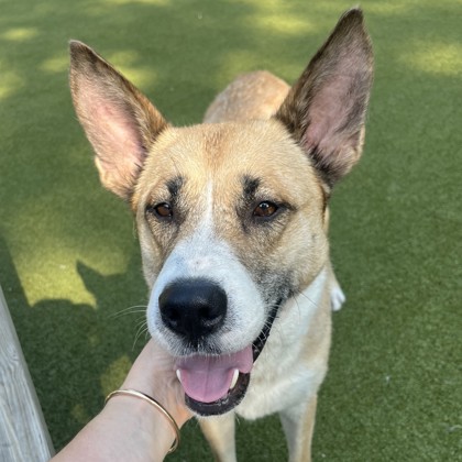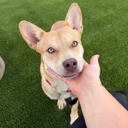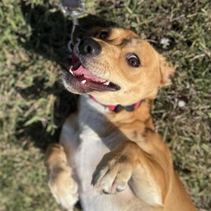 Hi, I'm Sandy! I'm a sweet, silly girl with a big heart and an even bigger love for treats! I've mastered the art of the perfect sit and paw shake-seriously, you'll be impressed. I love running around and getting the zoomies outside, but I'm just as happy chilling with my favorite humans. I'm full of personality, always ready to make you smile, and I can't wait to find a loving home where I can share all my love (and maybe a few snacks too!).APPOINTMENT TYPE: I am in a foster home, so please fill out and application to meet me!