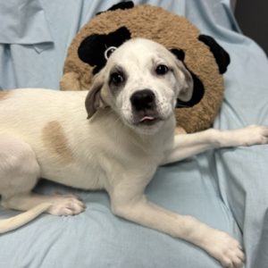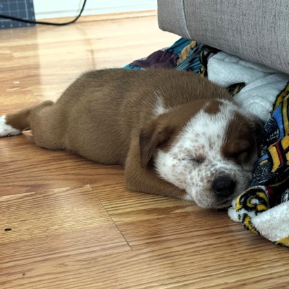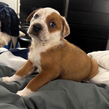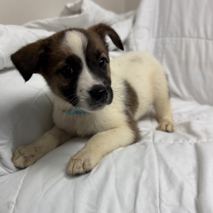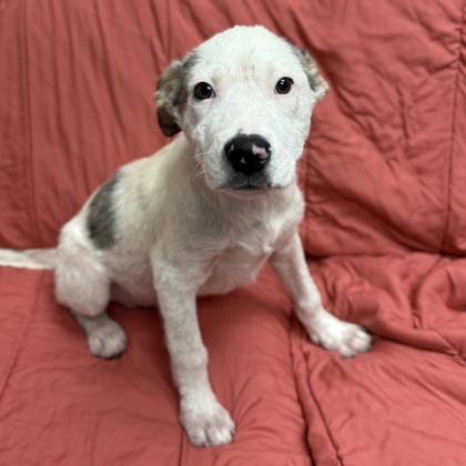 Meet Duck, a 4-month-old pup from our "Lucky Litter"! She's already about 30 pounds and expected to grow into a 75+ pound dog. Her breed is a Texas mystery mix-likely Great Pyrenees with some cattle dog or border collie-making her smart, loyal, and full of playful energy.Duck has been raised in a foster home since she was just 6 days old, so she's incredibly well-socialized and confident. She's crate trained, almost fully house trained, and already has great manners. She even learned the leash in just a day-this girl is quick and eager to learn!She loves playing with other dogs, exploring the yard, and being part of the action. Duck has had a great start in life and is ready to find a forever family to keep growingI am in a foster home so click the "Learn More About Me!" tab to fill out an application to meet me!