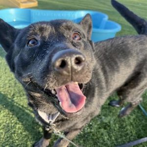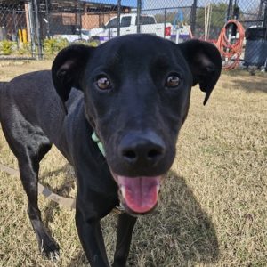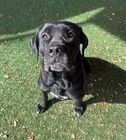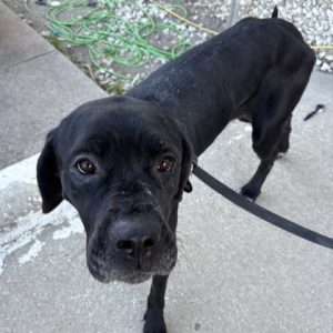 Hi! My name is TinyI'm a black Cane Corso mix with a big smile, a sweet heart, and a bubbly personality that lights up the room. I may look strong and impressive, but underneath it all I'm a happy girl who just loves being around people. I get excited about walks, snacks, attention, and pretty much anything that means I get to spend time with my humans. My tail wags fast, my whole body joins in, and I'm always ready to share some love (and maybe a little slobber). Whether we're out exploring or hanging out at home, I just want to be included. I bond closely with my people and thrive on positive attention and praise. I'd do best in a home that appreciates a large, loving dog with a cheerful spirit and is ready to give me guidance, consistency, and plenty of love.Come meet me from 12 PM to 5 PM, open every day.No application or appointment required - walk-ins welcome.SPCA of Texas, 2400 Lone Star Drive, Dallas, TX 75212