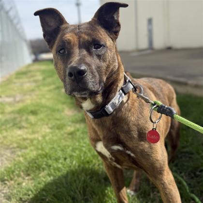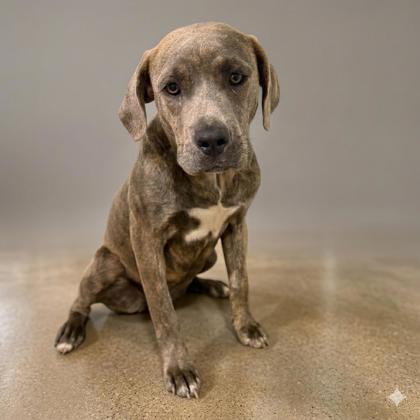 Hi, I'm Wolfie! I'm a 1-year-old brindle pup with a curious nose, a happy heart, and a whole lot of love to give. The humans say I'm in that perfect stage-young enough to be playful and adventurous, but old enough to start learning all the good dog stuff (I already know "Sit!"). Even though I love adventure, I'm really just a sweet boy at heart. I enjoy hanging out with my people, getting pets, and leaning in close when I want a little extra affection. I'm the kind of pup who will happily follow you around just to see what you're up to. I'm looking for a forever family who will help me keep learning, take me on adventures, and give me lots of love along the way. I promise to bring tail wags, goofy moments, and loyal companionship into your life.Come meet me from 12 PM to 6 PM, open every day. No application or appointment required - walk-ins welcome. SPCA of Texas, 2400 Lone Star Drive, Dallas, TX 75212