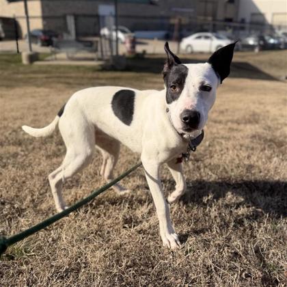 Hey there, I'm Milo! I'm a playful, goofy guy who's always up for a game of fetch-seriously, I could chase that ball all day! I make friends wherever I go and love learning new tricks, especially when treats are involved. Whether it's an adventure outside or just making you laugh with my silly antics, life with me will never be boring! I'd love a home where I have space to stretch my legs and people who enjoy being active with me. A yard, park trips, or daily adventures would make my tail wag nonstop. After I've burned off my energy, I'm always happy to come in for some love and quality time with my humans. If your home could use a little extra laughter, energy, and unconditional love, I think we'd make the perfect team.Come meet me from 12 PM to 6 PM, open every day.No application or appointment required - walk-ins welcome.SPCA of Texas, 2400 Lone Star Drive, Dallas, TX 75212