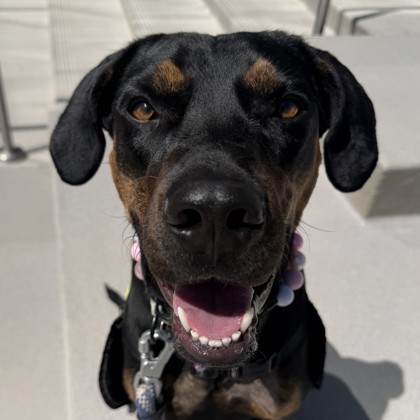 Hi, I'm Tiana!I'm a sweet, silly girl who thinks life is best spent running, exploring the outdoors, going on walks, and soaking up all the pets and cuddles I can get. I'm great with kids, crate trained, and even know a few tricks like sit, stay, and down-but my favorite skill is making everyone around me smile. I'm full of playful energy, but I also love snuggling on the couch after a long day of adventure. If you're looking for a fun-loving, affectionate gal who's equal parts goofy and loving, that's me!I am in a foster home so click the "Learn More About Me!" tab to fill out an application to meet me!