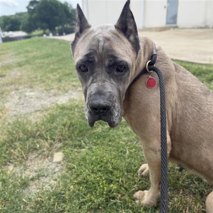 Hi, I'm Zeus. I'm a 3-year-old Cane Corso with a big head, a strong body, and-if I'm being honest-a very soft heart. People say I look intimidating, but once you get to know me, you'll realize I'm really just a gentle, loyal guy who wants to be close to his people. I'm past the puppy chaos stage, so you won't have to worry about me bouncing off the walls all day. I'm more of a "let's hang out together" kind of dog. A walk, some time outside, and then lounging nearby while you do your thing-that's my perfect day. If you're looking for a devoted companion who will stand by your side through everything, I might just be your guy.FOSTER REASON: I am waiting on my spay/neuter surgery before I can be ready for adoption. I am available for Foster-To-Adopt though so we can get to know each other before making things official. Come meet me from 12 PM to 5 PM, open every day. No application or appointment required - walk-ins welcome. SPCA of Texas, 2400 Lone Star Drive, Dallas, TX 75212