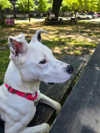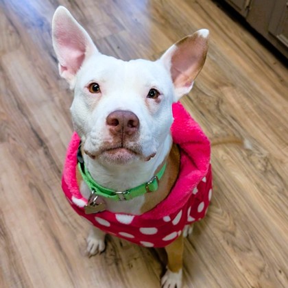 Hi there! I'm Bonito - a beautiful white pup with sparkling blue eyes and a heart full of love! I'm a super sweet, happy girl who adores people and can't help but wag my tail when I meet new friends. I love walks, playtime, and especially cuddles. I'm just looking for a forever family to share all my joy and affection with - could that be you?FOSTER REASON: I recently had FHO surgery on my back right leg and I'm recovering beautifully! I'll need about 7-8 more weeks of light rehab and rest before I'm ready for adoption. My recovery plan is simple - short leash walks that gradually increase each week and a bit of light exercise after 3-4 weeks. Easy and totally manageable! The SPCA will provide everything I need during this time, including all medical care and supplies, until I find my forever home.While I'm not available for adoption yet, I am available for foster-to-adopt! Please email foster@spca.org to schedule an appointment to meet me.