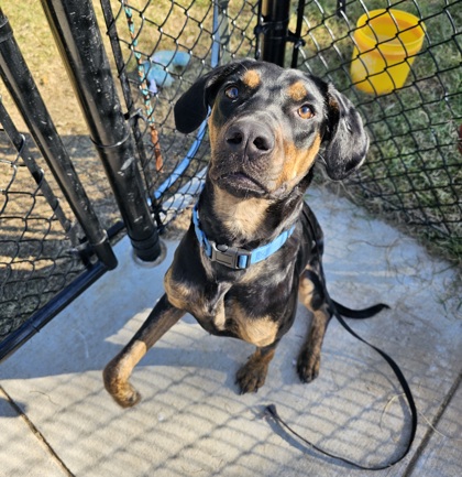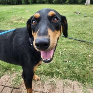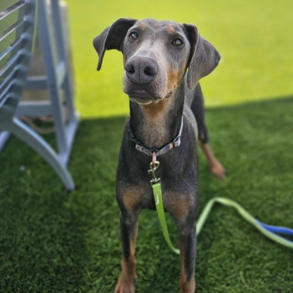 Meet Tiana - A True Southern Belle Looking for Her Fairy Tale Ending! "In the South Land there's a city Way down on the river Where the women (or in this case, dogs) are very pretty And all the men deliver!"Straight from the bayou (or maybe just the backyard), Tiana is a 2-year-old Doberman mix with the heart of a dreamer and the soul of a princess. She's got that classic charm - graceful, gentle, and quietly loyal - and she's ready to find her forever kingdom. This lovely lady may take a moment to warm up, but once she does, you'll see her true sparkle shine. Tiana adores being around her people, especially when there are treats involved (beignets, anyone?). With a little patience and a lot of love, she'll be your loyal companion through thick and thin - whether you're catching fireflies or curling up for a cozy night in. Tiana is looking for a calm, loving home where she can blossom at her own pace. She's not chasing frogs or fairy tales - just someone with a kind heart, a gentle hand, and maybe a snack or two. Ready to give this sweet Southern princess her happily ever after? Tiana is THE sweetest girl and love giving kisses and receiving pets.- We walked on the Trinity River Trail, it was not nearly as busy as the Katy Trail but there were still some bikers and walkers and she didn't pay anyone any mind (she did get a little nervous when the bike rode past but just stopped short, no barking or anything)"Borrow a Buddy Said:"Come meet me from 12 PM to 6 PM, open every day.No application or appointment required - walk-ins welcome.SPCA of Texas, 2400 Lone Star Drive, Dallas, TX 75212