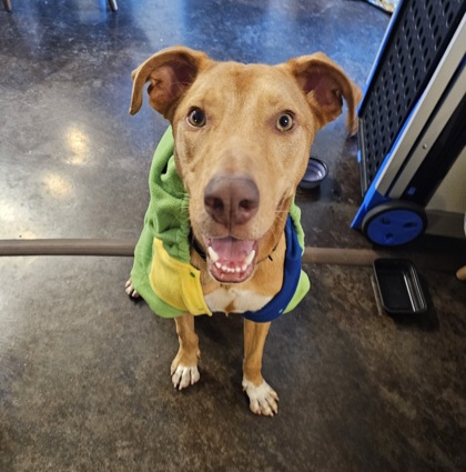 Hi, I'm Roo - a happy, playful 1-year-old pup looking for my forever home!I've got lots of energy and even more love to give. I enjoy walks, playtime, and exploring new places. I'm always curious about the world around me and love being part of the action. Whether it's a game of fetch or a new trail to sniff, I'm always up for some fun!I'm still young and learning, so I'd love a family who can be patient and guide me as I grow into the best boy I can be.Borrow a Buddy Notes:"Mr. Roo went out with us on a Borrow a Buddy where he went to Goodfriends Burgers and Beer Gardens where he enjoyed a tasty treat of bacon! He was a little nervous at first, but settled in and sat/laid nicely under the table. As we were leaving the restaurant another dog attempted to bark at Roo and he didn't react just kept walking alongside us.""We then took Roo to White Rock Lake and went on a nice 2 mile walk, where he walked alongside us (he only pulled on the leash once and that was when he saw a squirrel) and sniffed all of his surroundings. Each time a bicycle passed us on the trail he stopped patiently to wait for them to pass and looked on with interest."Come meet me from 12 PM to 6 PM, open every day. No application or appointment required - walk-ins welcome. SPCA of Texas, 2400 Lone Star Drive, Dallas, TX 75212