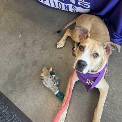 Hi, I'm Gallagher - your future MVP (Most Valuable Pup)! Okay okay, here's the deal: I'm Gallagher. I'm a sweet, treat-lovin', ball-chasin', tail-waggin' machine. I live for the sound of a squeaky toy and the crinkle of a treat bag. Throw a ball? I'm on it. Throw two? I'll find a way to bring back three. I don't make the rules. I've been told I've got a big heart and even bigger ears (hey, I'm listening!). I'm smart, playful, and always down for a little adventure. I'll be your shadow, your sidekick, and your loyal treat inspector. If you're looking for a dog who's 100% good boy? I'm your guy. BORROW-A-BUDDY FACTS: "Great getting in and riding in the car-even with children in the back seat. Loved running in the back yard. Did well with resident dog Loves to play fetch and brings the ball back every time. Excellent listener and came right away when called to go inside. Did an amazing job getting a bath in the tub. Walks well on leash and stays by your side. Loves to be near his people. Takes treats gently." My adoption fee has been sponsored by a loving volunteer. Come meet me from 12 PM to 6 PM, open every day. No application or appointment required - walk-ins welcome. SPCA of Texas, 2400 Lone Star Drive, Dallas, TX 75212