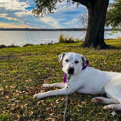 Hi there! My name is Ivory, and I'm a 4-year-old pup with a big heart and an even bigger love for people. If you're looking for a loyal sidekick, I might just be your girl. I'm the perfect mix of playful and chill. What I really want most is a family to love forever. Borrow a Buddy Notes:The Highlight of our Day Out. Ivory loved walking on a local trail with myself and another dog. We the went to Eatzi's in Preston Hollow where she was pretty mellow. She observed the people and other things happening around us. It's easy to get her attention when you gently call her name or make ticking noise with your mouth. She now's how to sit for a treat, and before her meals. She played well with other dogs and is a gentle soul. She does whine a little when she is uncomfortable, but once you show her where to lye down, etc. She settles down. I feel she'd make for a great doggy for a family or person who is looking for a dog that is mostly low key, gentle, and loves to go on walks. Ivory is a complete gem.Come meet me from 12 PM to 6 PM, open every day. No application or appointment required - walk-ins welcome. SPCA of Texas, 2400 Lone Star Drive, Dallas, TX 75212