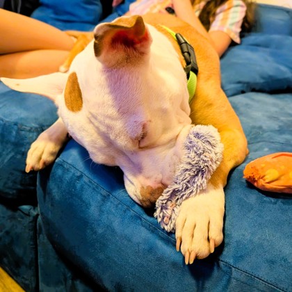 Hello! I'm Kid, a lovable and handsome pup with a heart full of love. I'm all about belly rubs-just give me a scratch, and I'll be your best friend for life! I'm gentle, friendly, and always up for cuddles. Whether we're playing or just hanging out, I'm a loyal companion who's sure to fill your life with love and joy. If you're looking for a buddy with a big heart, look no further-I'm your guy! I'm currently in a foster home, so please submit an adoption application if you would like to meet me!