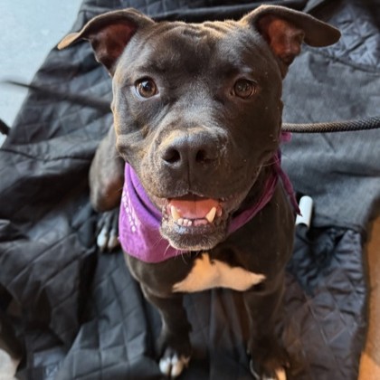 Meet Primrose - A Sweet Soul Ready to Bloom Just like the meaning behind her name, Primrose is ready for a fresh start and a chance to truly bloom. This 2-year-old black and white pittie mix is as gentle as she is beautiful, and she's searching for a loving home where she can grow into the confident, happy dog she's meant to be. Primrose can be a bit timid when first meeting new people or exploring unfamiliar places, but her friendly nature shines through with a little patience and a lot of kindness. Once she feels safe, she becomes the classic pittie lovebug-always wanting to be close, to the point where you'll wonder how she manages to fit herself that tightly next to you. If there's a lap or a hand available, she'll be there, soaking up every ounce of affection. She thrives on physical touch and human connection, and in true pittie fashion, she believes the best place to be is right by your side. Treats are the key to her heart, and she'll happily work for snacks with those soulful eyes locked onto you. Primrose is looking for a calm, patient home where she can continue to build her confidence, feel safe, and be loved for exactly who she is-a sweet, affectionate pup with so much love to give.Come meet me from 12 PM to 6 PM, open every day.No application or appointment required - walk-ins welcome.SPCA of Texas, 2400 Lone Star Drive, Dallas, TX 75212