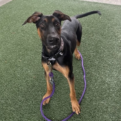 Hi there! I'm Ranger ??I'm a 6-month-old Doberman pup with a big heart, a curious nose, and a tail that never stops wagging! I'm full of life, love to play, and I'm always ready for an adventure - whether that's chasing a ball, exploring the yard, or just trotting beside you while we take on the world together. I'm still young, so I'm learning all the good-dog manners that will make me the best companion ever. I love leaning in close for pets and naps, and I'll happily keep you company on the couch or by your feet. If you're looking for a loyal best friend who will bring energy, joy, and lots of love into your life, I think we'd be a perfect match. Come meet me - I'll be the one with the big brown eyes and the happiest tail in the room!Come meet me from 12 PM to 6 PM, open every day.No application or appointment required - walk-ins welcome.SPCA of Texas, 2400 Lone Star Drive, Dallas, TX 75212