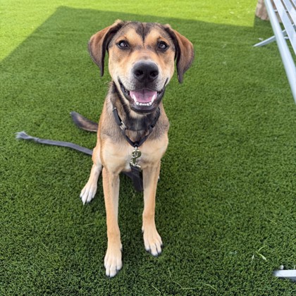 Hi there! I'm Nala, a bubbly puppy with a heart full of love. Every day is a new adventure for me. I love to make my human friends laugh with my funny antics. Playtime is my favorite time, especially when it involves a good game of fetch. My energy knows no bounds! I'm also a big fan of cuddles. My sweet nature makes me a great companion. Adopting me means having a loyal friend who will bring joy and laughter into your life. I can't wait to meet my forever family! FOSTER TESTIMONIAL: "She is such a good girl and so fun to get the chance to help this special girl grow and bloom! She will be someone's best friend. She helps me be so much more adventurous going swimming and hiking and helps me meet friends wherever we go! She constantly does silly things that make me laugh is she is so eager to please. Nala is such a special girl she hasn't met a person or dog that isn't her new best friend! She loves dogs, people, and kids. She is very gentle with playing with small dogs but also loves bigger dogs as well!" IDEAL FOREVER HOME: "An active owner or family that will take her out to hike and swim and give her all the attention and positive energy she deserves! She will make an amazing new best friend for someone. I also think she would excel in a home with other younger dogs to play with, she loves being in a dog pack. But she is easily attached to her person and will be great at being a companion!"