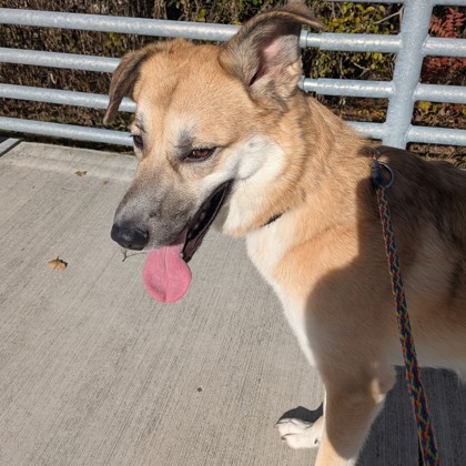 Hello! I'm Ginger, a 2-year-old lady with a sweet spirit and a playful streak. I love exploring new places, meeting new friends, and soaking up all the love and attention I can get. I'm curious, friendly, and ready to find a forever home where I can be part of the family. If you're looking for a loving, fun companion who's eager to share life's adventures, I'd love to meet you!Borrow a Buddy Notes:Ginger did very well on her walk in a trail. She was very attention seeking on passing people and curious with other dogs. She was easily directed away without issue and remained sweet the entire time. She was quiet in the car and during the walk. She got along well with other people and loved the attention.I am in a foster home so click the "Learn More About Me!" tab to fill out an application to meet me!