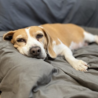 Hi there, I'm Benson - a gentle old soul looking for my soft landing.I'm a 10-year-old beagle with a heart full of love and a nose that still works better than just about anything! I may not be able to see the world around me anymore - I'm blind - but that doesn't stop me from finding joy in soft voices, kind hands, and the smell of something tasty nearby. The shelter is kind to me, but it can be a loud and confusing place when you can't see. What I dream of most is a comfy bed, gentle company, and a routine that helps me feel safe and settled.If you've got room in your heart (and maybe a soft spot on your couch), I'd love to be your loyal companion. I might not see your face, but I promise - I'll feel your love.I am in a foster home so click the "Learn More About Me!" tab to fill out an application to meet me!