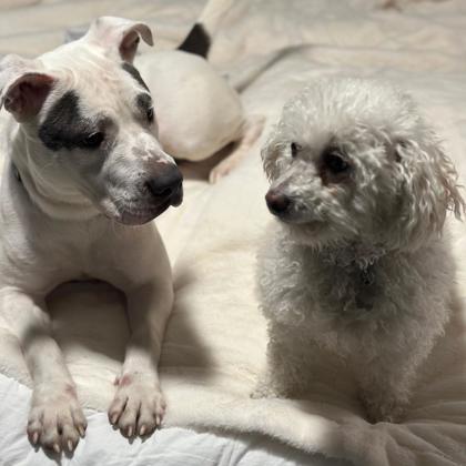 Hi there! I'm Bonita - a beautiful white pup with sparkling blue eyes and a heart full of love! I'm a super sweet, happy girl who adores people and can't help but wag my tail when I meet new friends. I love walks, playtime, and especially cool toys. I enjoy walks, cozy naps, and soaking up all the love I can get. I promise to be a loyal companion, a great listener, and your biggest fan. I would do best in a home where I can take life at a comfortable pace and be given the patience and love I deserve. I'm happiest when I'm close to my humans, whether that means relaxing at your feet or quietly following you from room to room. If you're looking for a sweet, loving dog to share your days with, I'd love to meet you. I'm just looking for a forever family to share all my joy and affection with - could that be you?Come meet me from 12 PM to 6 PM, open every day. No application or appointment required - walk-ins welcome. SPCA of Texas, 2400 Lone Star Drive, Dallas, TX 75212