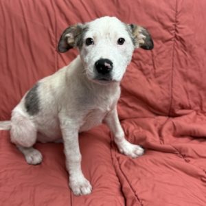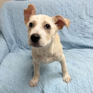 Meet Clover, a 4-month-old pup from our "Lucky Litter"! She may have started out the tiniest, but at around 30 pounds already, she's on track to grow into a 75+ pound dog. Her breed is a Texas mystery mix-likely Great Pyrenees with some cattle dog or border collie-making her a smart, gentle, and playful companion.Clover has been raised in a loving foster home since she was just 6 days old, giving her an amazing start. She's well-socialized with dogs and people of all ages, crate trained, and doing great with potty training. She's a thoughtful, observant pup who likes to take things in at her own pace, but once she's comfortable, her playful side really shines.She loves being outside, playing with dog friends, and zooming around the yard. Clover has grown up surrounded by love and is ready to find a forever family to continue that journey with.I am in a foster home so click the "Learn More About Me!" tab to fill out an application to meet me!