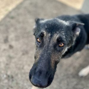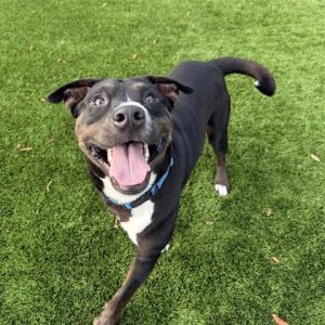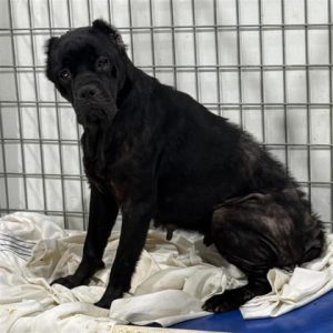 Hi! My name is TinyI'm a black Cane Corso mix with a big smile, a sweet heart, and a bubbly personality that lights up the room. I may look strong and impressive, but underneath it all I'm a happy girl who just loves being around people. I get excited about walks, snacks, attention, and pretty much anything that means I get to spend time with my humans. My tail wags fast, my whole body joins in, and I'm always ready to share some love (and maybe a little slobber). Whether we're out exploring or hanging out at home, I just want to be included. I bond closely with my people and thrive on positive attention and praise. I'd do best in a home that appreciates a large, loving dog with a cheerful spirit and is ready to give me guidance, consistency, and plenty of love.I'm currently in a foster home, so email foster@spca.org to meet me or click the "learn more about me" tab to fill out an application to meet me!