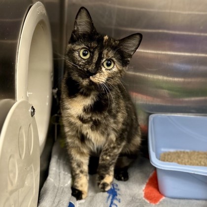 Hi, I'm Jinx! I'm an 8-month-old tortie with plenty of attitude, curiosity, and a dash of mischief. I like to do things on my terms and sometimes need a little time to decompress and feel safe-but once I do, I'm full of personality and charm.I love exploring, watching the world from my favorite spots, and figuring out all the fun a home has to offer. If you're patient, gentle, and ready to appreciate a little sass with a lot of heart, we could be the perfect match!FOSTER REASON: I'm being treated for some tummy issues, but I'm feeling better every day thanks to my SPCA vets and my meds! With a little extra love in a foster home, I'll be ready for adoption in no time! Come meet me from 12 PM to 6 PM, open every day. No application or appointment required - walk-ins welcome. SPCA of Texas, 2400 Lone Star Drive, Dallas, TX 75212 Or if you're interested in just fostering, please email foster@spca.org to schedule an appointment!