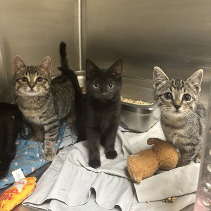 Meet our adorable squad of five playful kittens-2 sleek little black panthers and 3 bouncy tabbies! At about 2.5 months old, they're the perfect mix of sweet, silly, and full of kitten mischief. They love pouncing on toys, wrestling with their siblings, and then curling up for a cozy group nap. They're social, curious, and guaranteed to make you smile every single day.They can go to foster all together, in pairs, or as singletons-whatever fits your home best!FOSTER REASON: These cuties are being treated for ringworm, a totally curable fungal infection that just needs simple meds and a little time. They'll heal much faster in a foster home than in the shelter! Ringworm can spread through close contact, so a bathroom or other easy-to-clean space is perfect for their short recovery period.The shelter will provide everything you need-medication, cleaning supplies, bedding, and guidance. All they need is a bit of patience and some foster love to help them heal!Once they're cleared, they'll be ready for their spay/neuter surgeries and then... adoption time! Yay!If you're interested in fostering these cuties, please email foster@spca.org to learn more or schedule a pickup!