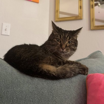Hi, I'm Willa! I'm a sweet tabby girl with a gentle heart and a curious spirit. I love cozy naps, soft pets, and quietly keeping you company. If you're looking for a loving little shadow to brighten your days, I might be your perfect match.FOSTER REASON: I'm recovering from a kitty cold (an upper respiratory infection). The medications are helping, but my doctor thinks I'll heal much faster in a home where I can relax, feel safe, and be a little happier. Come meet me from 12 PM to 6 PM, open every day. No application or appointment required - walk-ins welcome. SPCA of Texas, 2400 Lone Star Drive, Dallas, TX 75212 Or if you're interested in just fostering, please email foster@spca.org to schedule an appointment!