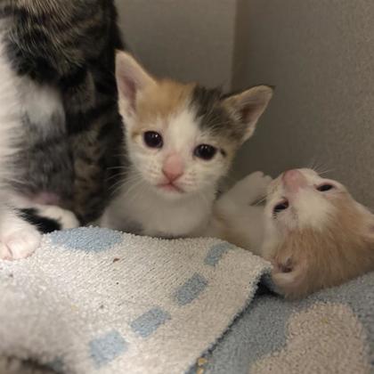 Hi there! We're Rumi, Zoey, and Saja, three tiny 3ish-week-old kittens, and this is our amazing mama, Mira.We're getting big enough to take our next adventure-moving into a cozy foster home! We need a safe, comfy place for about 4-6 weeks while we grow stronger, gain confidence from our mama, and get ready for our spay/neuter surgeries. We'd love to stay together (or in pairs/small groups) so we can keep snuggling, playing, and napping side by side.We may be small, but we're already full of soft purrs, wiggly paws, and heart-melting kitten cuddles! If you're interested in fostering-or even a foster-to-adopt opportunity-we'd be so excited to meet you.Don't worry, everything we need will be provided for us and our mama, including food, bowls, crates, bedding, potty pads, and more. The SPCA of Texas Foster Team will also give you all the training and support you need to take great care of a mama cat and her babies.Please email foster@spca.org to learn more or schedule a pickup-we can't wait to meet you!