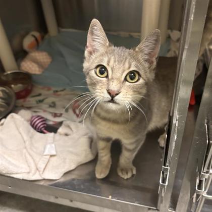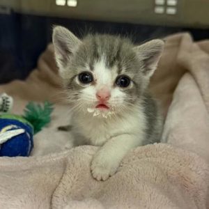 Hi, I'm Poppy! I'm a tiny grey-and-white kitten with a big heart and the softest little paws. I'm sweet, gentle, and love snuggling just as much as I love playful pounces. Whether I'm curled up in your lap or chasing a toy twice my size, I'm always ready to bring a little joy to your day. If you're looking for a small sweetheart with big love to give, I'm your girl!FOSTER REASON: I'm being treated for ringworm-a curable fungal infection that just needs some simple meds. I'll heal much faster in a foster home than in the shelter! Ringworm can spread through close contact, so a bathroom or easy-to-clean space is perfect for my recovery. The shelter provides everything-meds, cleaning supplies, bedding, and guidance. All I need is a little patience and some foster love to help me heal! Email us at foster@spca.org to learn more about fostering kittens or to schedule a pick-up!