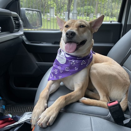 Hi, I'm Carley. I'm a sweet, happy girl who loves people and brings a little sunshine wherever I go. I enjoy attention, gentle play, and being close to my humans, whether we're out having fun or settling in for a cozy break. I'm ready to share my joyful heart with a family of my own.FOSTER REASON: I am being treated for heartworms, so I will need a calm home to relax in due to being under exercise restriction while undergoing treatment. This means I will need to be a couch potato and go for leash walks only! My foster family should also be comfortable bringing me to the SPCA of Texas periodically for vet visits. Borrow a Buddy Said: We took Carley to Strutt your Mutt and she really enjoyed getting out for the exercise. She was hesitant in the car but settled down eventually. She loves showing affection and will kiss you up so you always feel special and like her favorite person. She aims to please and is a very sweet girl. She did well with my dog about her size as well.