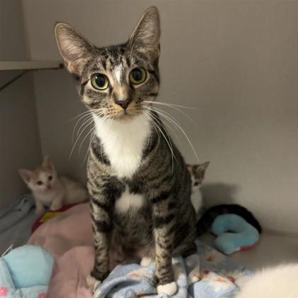Hi, I'm Tabby I'm a quiet 3-month-old kitten who prefers to observe before jumping into new situations. I'm a little shy, but I feel safest in calm, cozy spaces.I'm currently being treated for ringworm, which is totally curable with medication. A foster home will help me heal much faster than the shelter. Because ringworm can spread through close contact, an easy-to-clean space like a bathroom is ideal. The shelter provides all supplies-I just need time, patience, and gentle care.I'm available for foster or foster-to-adopt while I recover! Email foster@spca.org to learn more or to schedule a pick up!
