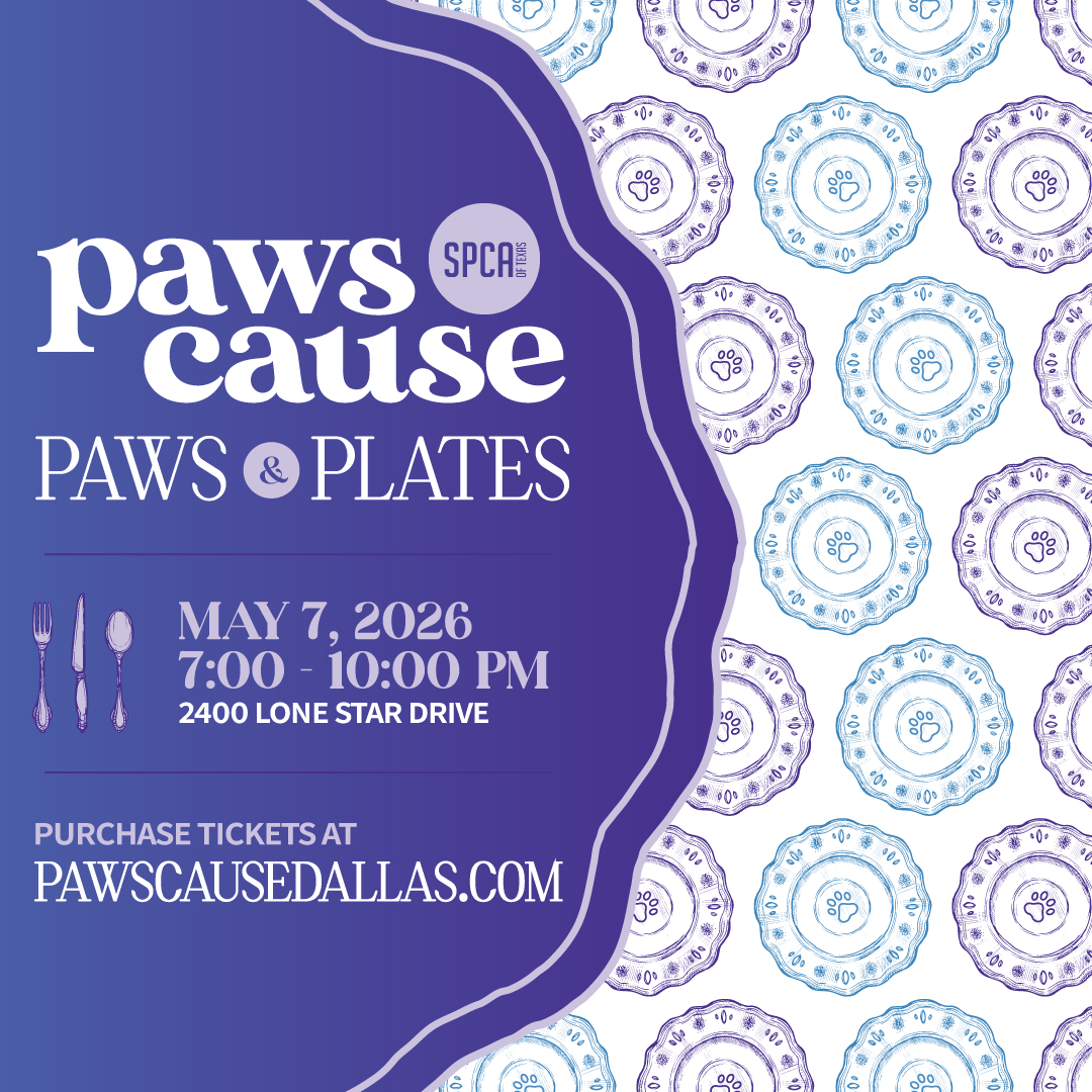 Paws Cause 2026 May 7, 2026 @ 7:00 pm - 10:00 pm TICKETS ON SALE NOW! Fun, food, and fur will be had at Paws Cause 2026 on May 7, 2025 from 7-10PM at the SPCA of Texas’ Dallas Animal Care Center, 2400 Lone Star Drive, Dallas, TX 75212. Paws Cause is... Location / SPCA of Texas' Dallas Animal Care Center, 2400 Lone Star Dr., Dallas, TX Event Details