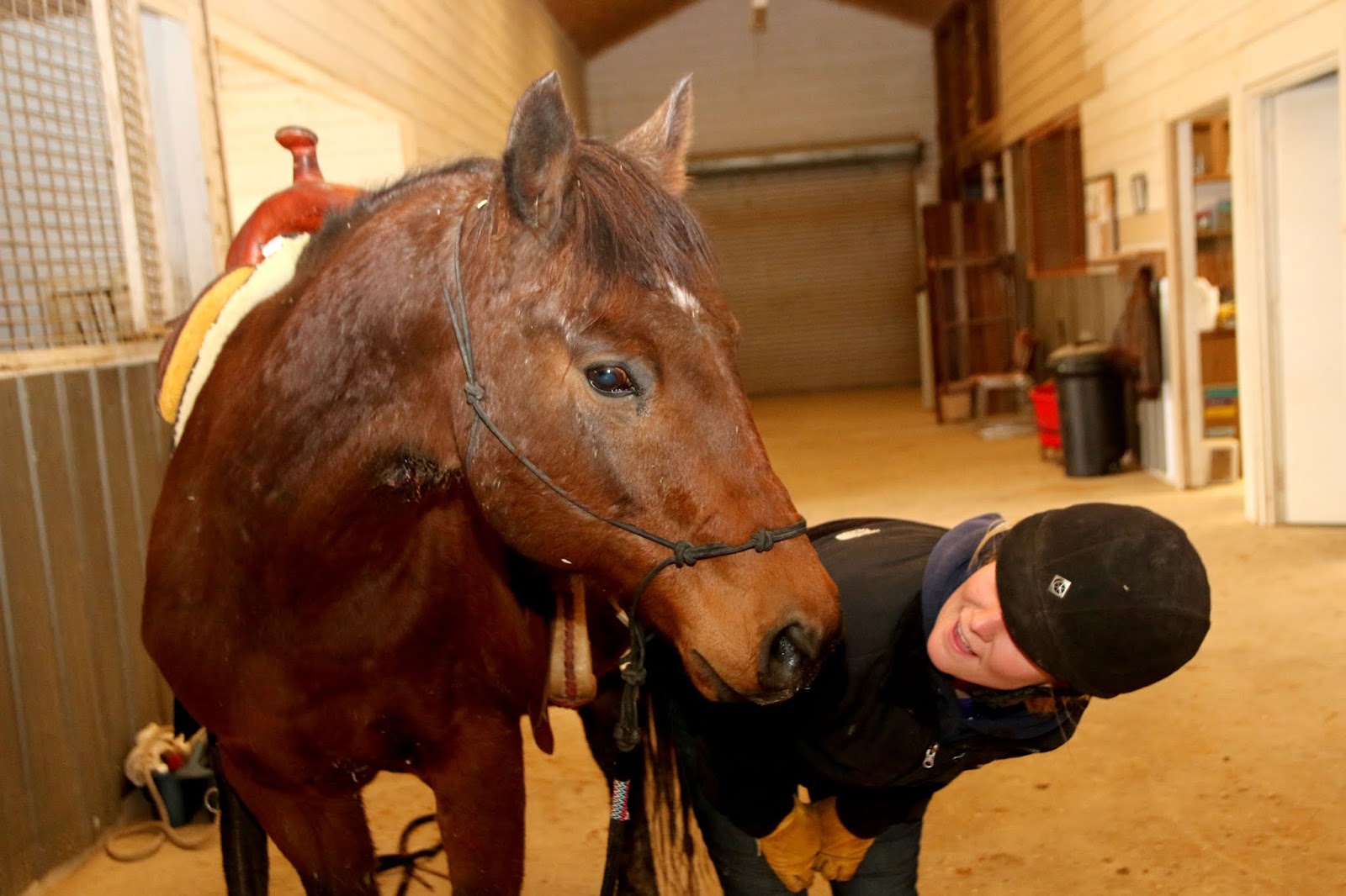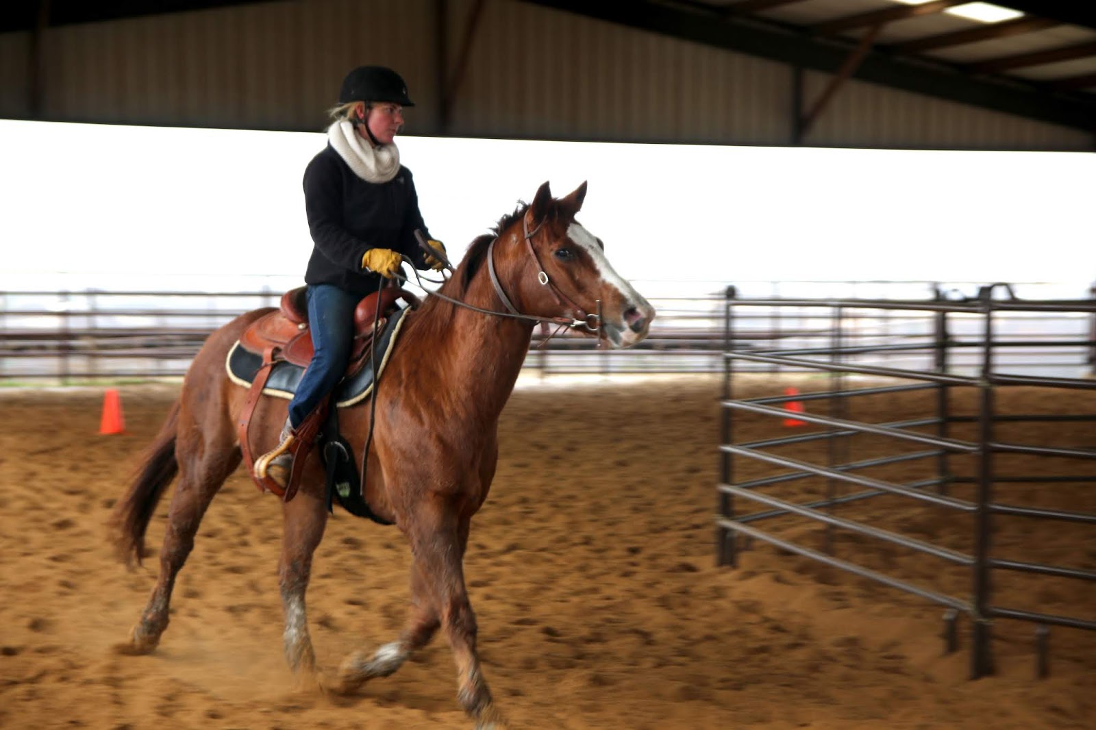 It was awfully muddy outside, but Harmony Hilltop Ranch’s covered arena provided the protection from the elements that allowed Daisy to work on Hershey and Skip’s training.