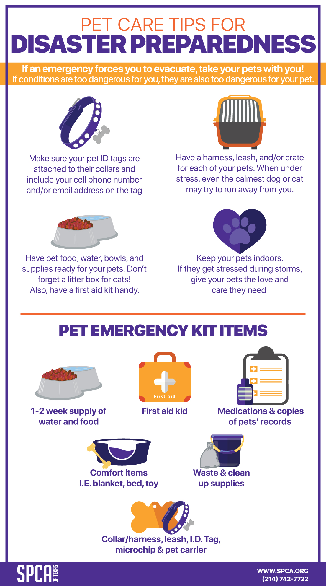 Asking for help isn’t easy, and sometimes securing help can be even more difficult. Nonprofits, local government agencies, schools and places of worship are excellent resources during crises, so look into what organizations are close to you and feel free to reach out any time to ask how you can access assistance when you need it. When disaster strikes, the SPCA of Texas is here to support our community. If you need supplies in an emergency, reach out to us at 214-742-7722.