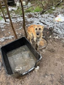 Earlier that day, the Van Zandt County Sheriff’s Office responded to a call on a property near Edgewood, Texas, and discovered an adult male shepherd mix-type dog chained to a tree. At the time, temperatures were approximately 20 degrees Fahrenheit with sleeting conditions, and the dog did not have access to shelter to protect him from the elements. The dog appeared emaciated, with ribs visible through his fur, which was coated in ice.