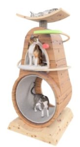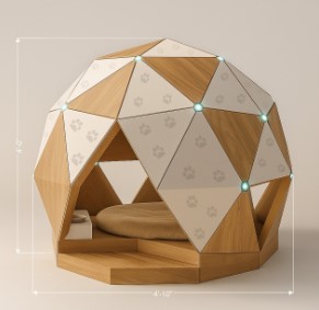 Form Follows Feline, by Gresham Smith + Austin Commercial + Woodhaus Form Follows Feline celebrates the elegance and playfulness of feline form through sculptural geometry inspired by the abstract silhouette of a cat and the typographic elements “C,” “A” and “T.” Crafted from wood with integrated fabric textures, its curved body invites both rest and activity. The circular lower enclosure provides a cozy hideout, while the elevated perch beneath a soft arch and the gently contoured top hammock together offer inviting spaces for lounging, observation and serene relaxation. Courtesy SPCA of Texas