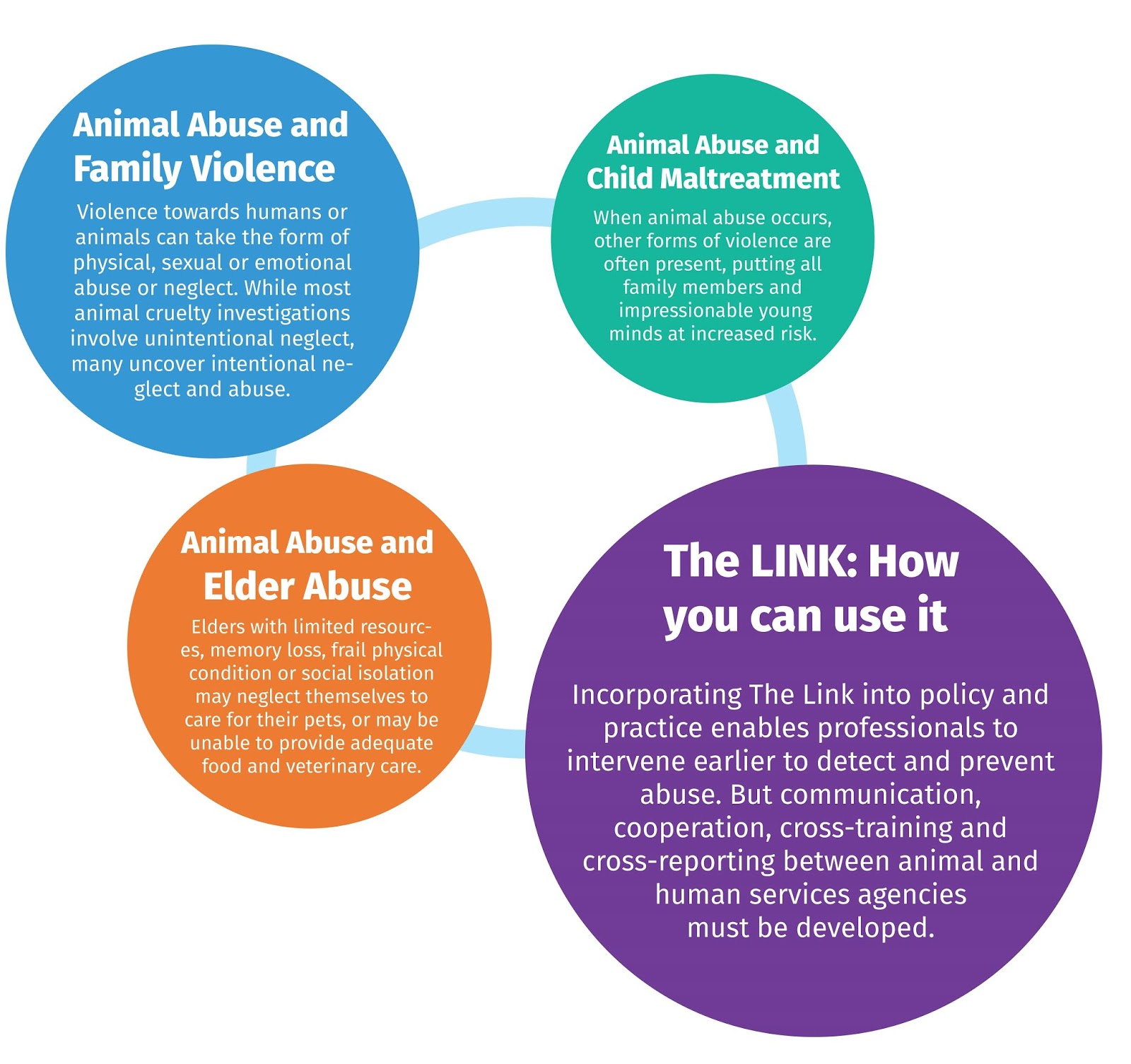 The elderly, ill and intellectually disabled are incredibly vulnerable to those who seek to exploit and abuse them. Abuse can go undetected when threats against the pet are being used to exert power. This is why it is so important that all law enforcement, animal welfare organizations and social service providers are aware of the link between animal abuse and abuse of vulnerable adults so that, together, we can recognize the signs and stop the cycle of abuse.